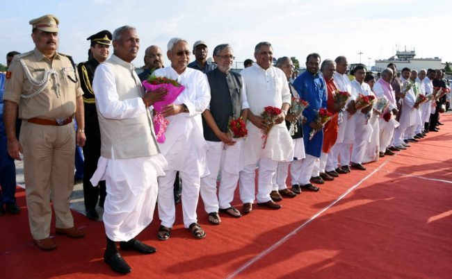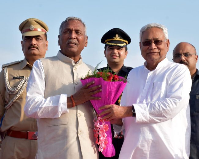 बिहार के नवनियुक्त राज्यपाल फागू चौहान रविवार को पटना पहुंचे. पटना एयरपोर्ट पर सीएम नीतीश कुमार समेत बिहार कैबिनेट के सदस्यों ने उनका भव्य स्वागत किया.