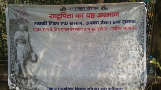 समान काम के लिए समान वेतन की मांग कर रहे नियोजित शिक्षकों ने पटना के मूल्यांकन केंद्रों पर काम ठप कर रखा है. शिक्षकों का कहना है कि जबतक सरकार हमारी मांगें पूरी नहीं करेगी तब तक ये सत्याग्रह चलता रहेगा.