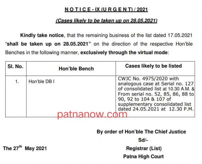 करीब 2 साल से छठे चरण के नियोजन को पूरा होने का इंतजार कर रहे बिहार के लाखों शिक्षक अभ्यर्थियों के लिए बड़ी खबर आ रही है. बिहार सरकार द्वारा चीफ जस्टिस से ब्लाइंड केस की मेंशनिंग का अनुरोध किए जाने के बाद पटना हाईकोर्ट ने नेशनल ब्लाइंड फेडरेशन के मामले की सुनवाई के लिए 28 मई की डेट निर्धारित की है. 28 मई को सबसे पहले नंबर पर इसी मामले को रखा गया है.