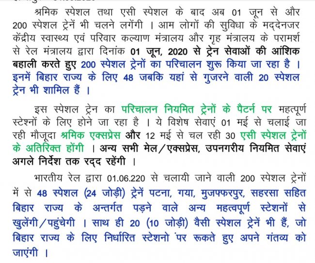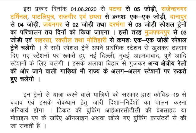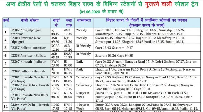 एक जून से शुरू हो रहा है 200 ट्रेनों का परिचालन पटना, आरा और बक्सर स्टॉपेज वाली ट्रेनें पीएनसी Post navigation बिहार में कैसा होगा लॉक डाउन 5.0! 1 जून से कुछ ऐसी होगी बिहार की परिवहन व्यवस्था