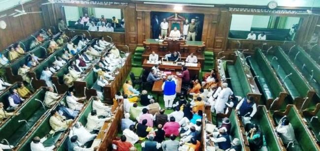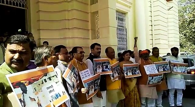 विधानसभा में वेल में बैठे बीजेपी विधायक