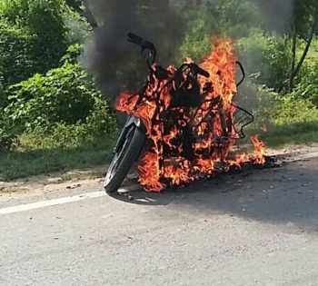 बाइक में लगी आग