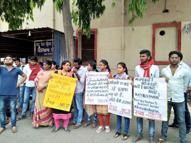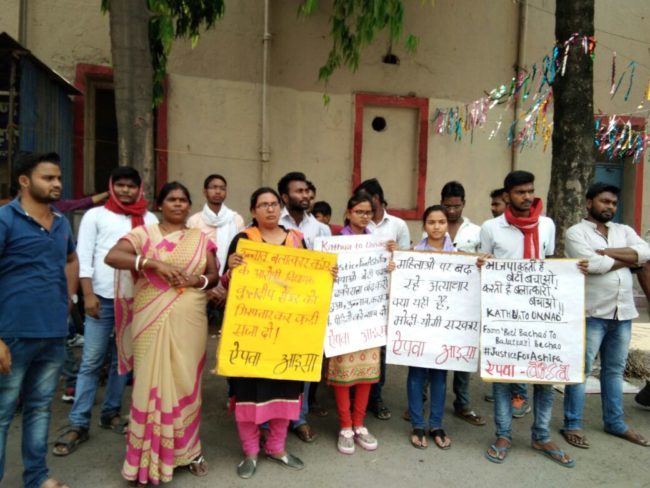 जम्मू कश्मीर रेप कांड में खुलेआम दोषियों को बचाने की मांग को लेकर भाजपा समर्थक सड़को पर उतर रहे है जो पूरे देश को शर्मिंदा कर रहे है.सभा को सम्बोधित करते हुए आरा नगर की ऐपवा की सचिव संगीता सिंह ने देश मे घटित इन तीनों घटना पर निंदा व्यक्त किया और दोषियों को अविलंब गिरफ्तार कर कड़ी से कड़ी सजा देने की मांग की.