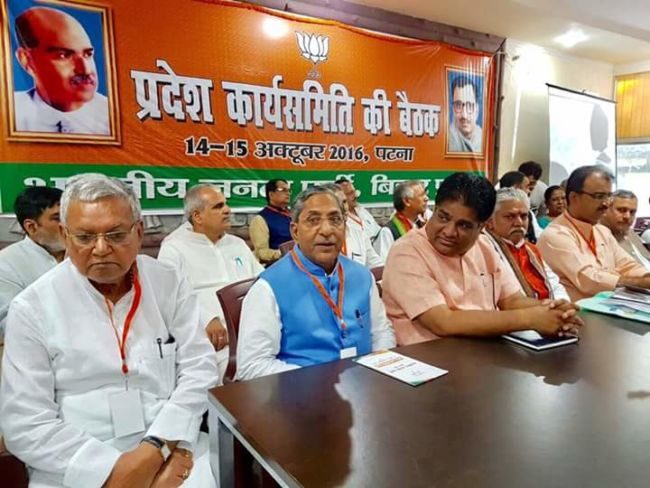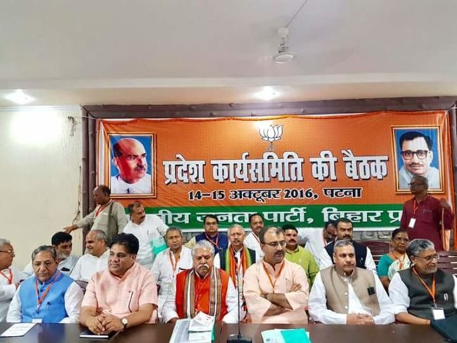 भारतीय जनता पार्टी बिहार प्रदेश की दो दिवसीय प्रदेश कार्यसमिति की बैठक पटना में शुरू हो गई ,इस बैठक में प्रदेश के कई महत्वपूर्ण लोगों ने शिरकत कर रहे है. इस बैठक में कई महत्वपूर्ण मुद्दों पर चर्चा की जा रही है .बैठक में बीजेपी नेता सुशील मोदी, गोपाल नारायण सिंह,मंगल पाण्डेय ,नन्द किशोर यादव और डॉ प्रेम कुमार समेत कई नेता उपस्थित थे .