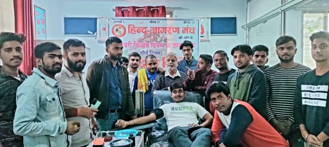 आरा, 6 दिसंबर. बाबरी विध्वंस दिवस के उपलक्ष में हिंदू जागरण मंच के द्वारा रक्तदान शिविर का आयोजन किया गया. इस दौरान हिंदू जागरण मंच के प्रदेश उपाध्यक्ष सोना लाल ने कहा कि आज इस ऐतिहासिक अवसर को यादगार बनाने एवं उसे सार्थक रूप प्रदान करने के लिए हिंदू जागरण मंच के द्वारा रक्तदान का आयोजन किया गया, जिससे लोगों की मदद हो सके. कार्यक्रम में हिंदू जागरण मंच के तमाम कार्यकर्ताओं ने रक्तदान किया जिसमें सौरभ, ऋषभ श्रीवास्तव, अमन केसरी, प्रिंस सचदेव, प्रवीण बजरंगी, राजवीर सोनी, मनन पांडे, बलवंत सिंह, सोनू कुमार, अरुण कुमार, चिंटू सोनी, राहुल सोनी, जय केसरी एवं शहर के समाजसेवी पिंटू ओझा, राजा तिवारी ने भी रक्तदान किया.