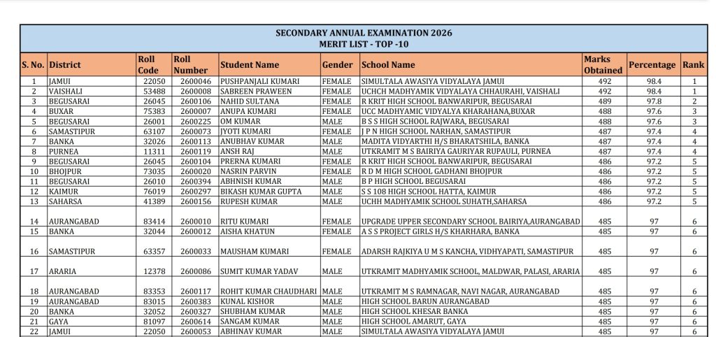 ◆ परीक्षाफल को वेबसाइट https://result.biharboardonline.org अथवा https://matricbiharboard.com पर देखा जा सकता है.