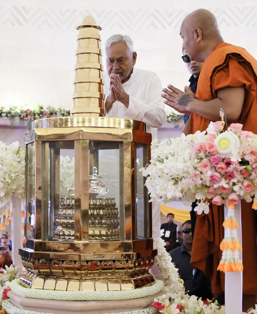 उद्घाटन के पश्चात् मुख्यमंत्री स्मृति स्तूप के प्रथम तल पर मुख्य हॉल में भगवान बुद्ध के पवित्र अस्थि अवशेष के अधिष्ठापन कार्य एवं पूजा समारोह में शामिल हुए.