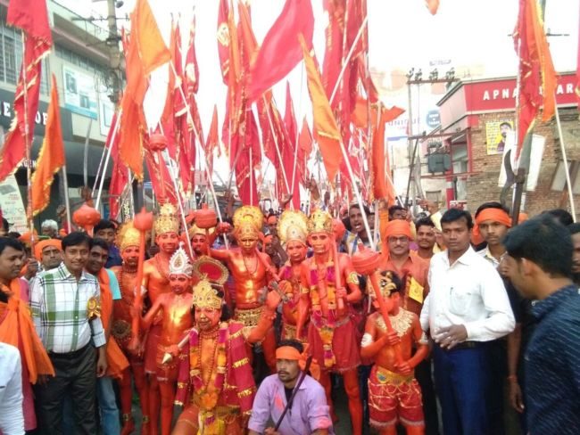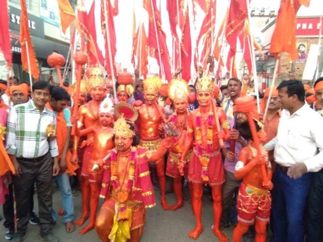 हनुमान के रूप धरे रामभक्तों ने दिखाये करतब