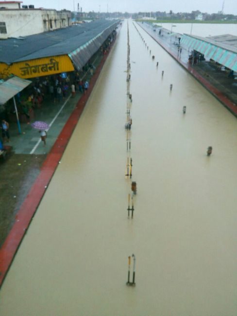 बिहार के सीमावर्ती इलाकों में भीषण बाढ़ के कारण रेल यातायात बुरी तरह प्रभावित हुआ है. किशनगंज, जोगबनी समेत कई प्लेटफॉर्म पानी में डूब गए हैं. पूर्व मध्य रेल के मुख्य जनसंपर्क अधिकारी राजेश कुमार ने बताया कि कटिहार मंडल के किशनगंज और हटवार स्टेशनों के बीच पुल संख्या 117 पर पानी खतरे के निशान से उपर बहने के कारण इस खंड पर ट्रेनों का परिचालन बाधित हो गया है. इनके अलावा कई जगहों पर रेल ट्रैक के नीच की मिट्टी धंसने और ट्रैक पर पानी भर गया है जिसके कारण बड़ी संख्या में ट्रेनों का रद्द किया गया है जबकि कई ट्रेनों को दूसरे रूट से चलाया जा रहा है.