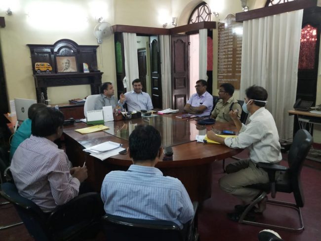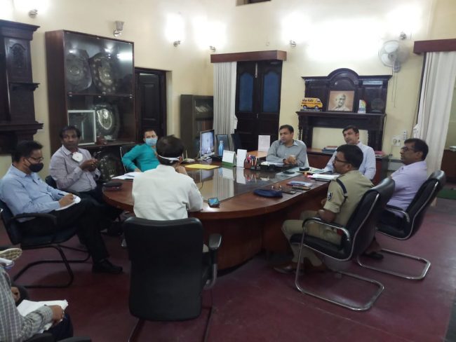 परिवहन भवन मुख्यालय स्थित अपने कार्यालय कक्ष में शुक्रवार को प्रमंडलीय आयुक्त संजय कुमार अग्रवाल ने कोविड-19 से संबंधित समीक्षा बैठक पुलिस महानिरीक्षक संजय सिंह, पटना जिलाधिकारी कुमार रवि, एसएसपी उपेंद्र शर्मा आदि के साथ की तथा आवश्यक निर्देश दिए.