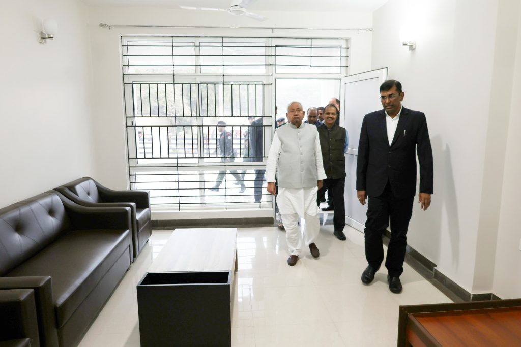 पटना।। मुख्यमंत्री नीतीश कुमार ने रविवार को दारोगा राय पथ स्थित नवनिर्मित MLA आवास (डुप्लेक्स बंगला) का निरीक्षण किया. निरीक्षण के दौरान मुख्यमंत्री ने MLA आवास के विभिन्न भागों का जायजा लिया और वहां उपलब्ध करायी गयी सुविधाओं की विस्तृत जानकारी ली. अधिकारियों ने मुख्यमंत्री को बताया कि सभी आवासों में निर्वाचन क्षेत्र संख्या और विधानसभा क्षेत्र अंकित है.