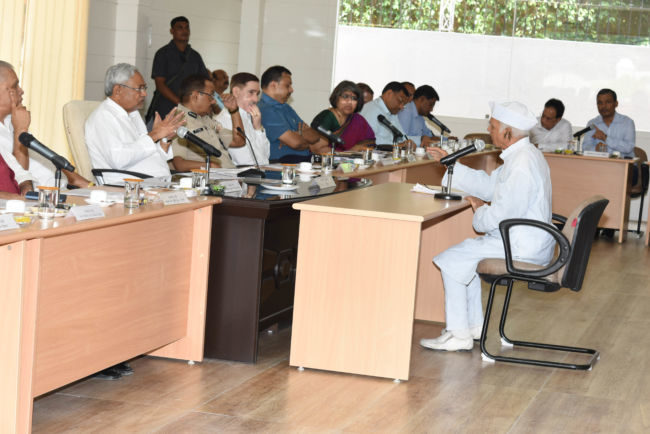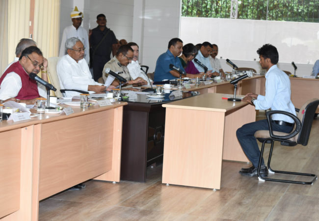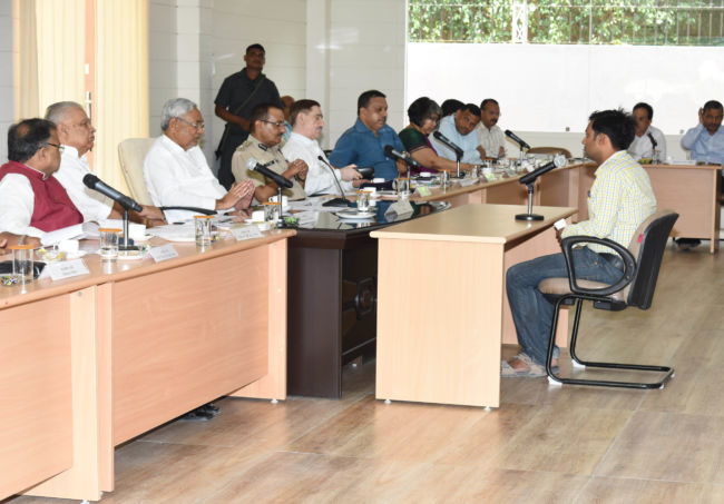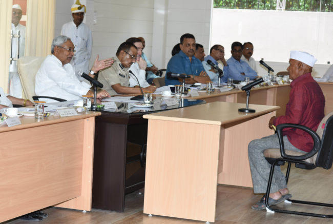 मुख्यमंत्री नीतीश कुमार लोक संवाद कार्यक्रम में लोगों के सुझाव सुनते हुए