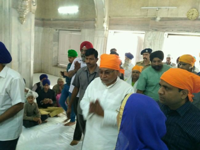 बिहार के मुख्यमंत्री नीतीश कुमार ने आज सुबह पटना साहिब स्थित गाय घाट गुरुद्वारा में मत्था टेका. सीएम ने गुरु महराज के सभी अवशेष तथा अस्त्र-शस्त्र तथा गुरु ग्रन्थ साहिब का दर्शन किया.
