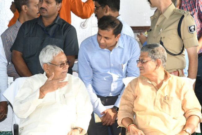 CM के साथ पर पथ निर्माण मंत्री नंद किशोर यादव, जल संसाधन मंत्री राजीव रंजन सिंह और सभी संबंधित पदाधिकारी मौजूद थे.