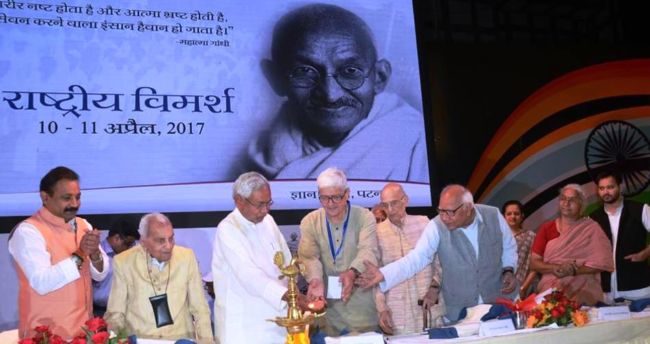 मुख्यमंत्री नीतीश कुमार ने सोमवार को चम्पारण सत्याग्रह शताब्दी समारोह के अवसर पर पटना के ज्ञान भवन में आयोजित राष्ट्रीय विमर्श का उद्घाटन किया. इस अवसर पर गोपाल कृष्ण गांधी, मेधा पाटकर और रजी अहमद समेत कई गांधीवादी विचारक भी मौजूद थे.