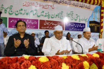 शुक्रवार को सीएम नीतीश कुमार ने हाजियों के पहले जत्थे को मदिना के लिये रवाना करने से पूर्व हज भवन में आयोजित दुआईया मजलिस में शिरकत की. इस दुआईया मजलिस कार्यक्रम में बिहार राज्य हज कमिटी के अध्यक्ष हाजी मोहम्मद इलियास हुसैन उर्फ सोनू बाबू ने मुख्यमंत्री को फूलों का गुलदस्ता, टोपी एवं अंगवस्त्र भेंटकर सम्मानित किया.