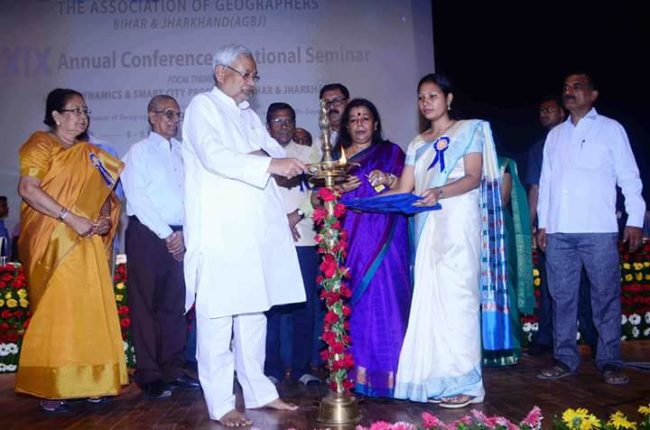 पटना के आर्यभट्ट ज्ञान विश्वविद्यालय में सेंटर ऑफ ज्योग्राफी खुलेगा. मुख्यमंत्री नीतीश कुमार ने इसका प्रस्ताव देते हुए कहा है कि वहां विभिन्न समस्याओं के अध्ययन के साथ-साथ उनके निदान के उपाय सुझाए जा सकते हैं. सीएम रविवार को ज्ञान भवन में एसोसिएशन ऑफ ज्योग्राफर्स (बिहार-झारखंड) के 19वें कान्फ्रेंस सह दो दिवसीय राष्ट्रीय सम्मेलन को संबोधित कर रहे थे. पटना स्थित A N कॉलेज के ज्योग्राफी विभाग की ओर से अर्बन डायनामिक्स स्मार्ट सिटी प्रोस्पेक्टस इन बिहार-झारखंड विषय पर ये आयोजन किया गया था.