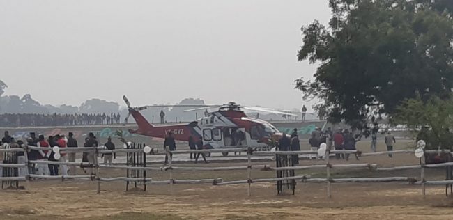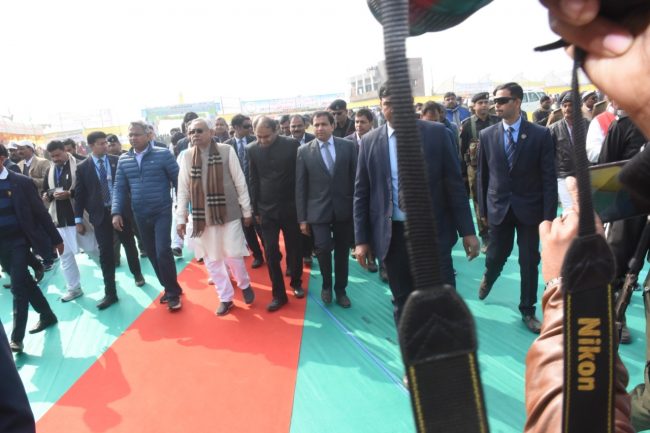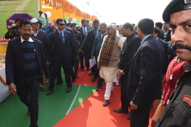 मुख्यमंत्री मंत्री का हेलीकॉप्टर 11:22 में कार्यक्रम स्थल पहुंचते ही समर्थकों द्वारा नारेबाजी की गई वही डीएम समेत पॉली हाउस के कृषक कांति किरण ने जलबेरा के फूल दे मुख्यमंत्री का स्वागत की और 11:30 में पॉली हाउस का अवलोकन कराया. उसके बाद सीएम ने बागवानी 11:40 में देखी. वही बागवानी देखने के बाद कृषि विभाग समेत कार्यक्रम स्थल पर लगे 25 स्टॉलों का भी निरीक्षण किया. उसके बाद 11:50 में तालाब का अवलोकन कांति किरण के बेटी रेणु और बेटा शियराम मौर्य व दीपक ने अवलोकन कराया. 12:05 मिनट पर अवलोक खत्म होने के बाद 12:12 मिनट पर हेलीकॉप्टर बक्सर के लिए रवाना हुआ.