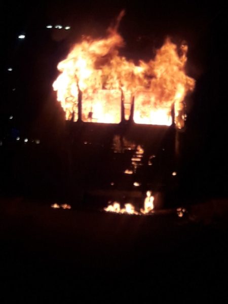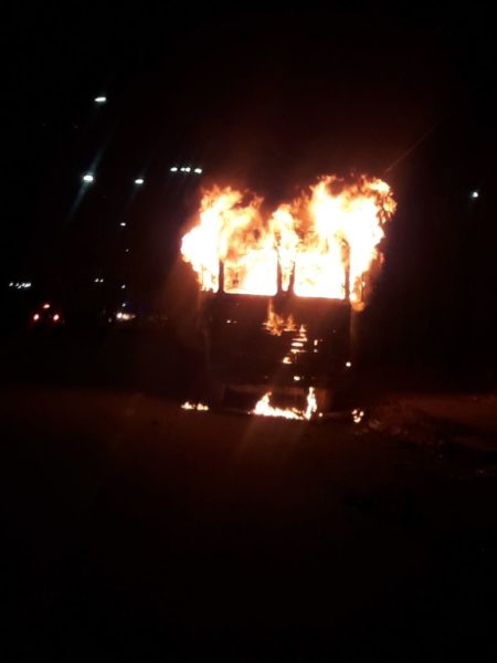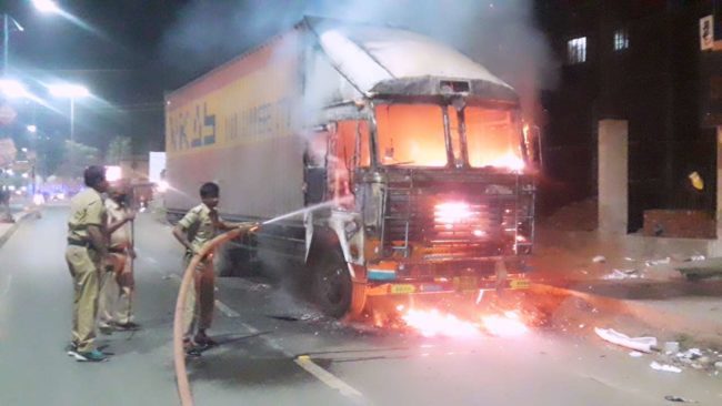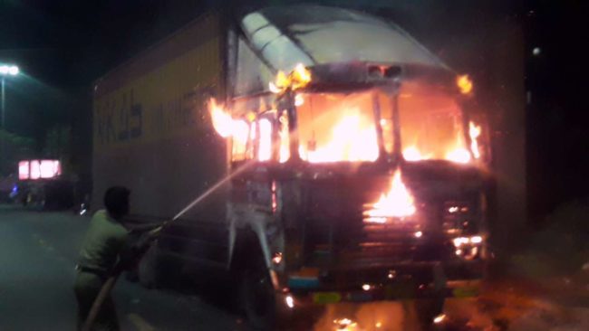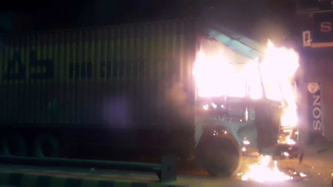 पटना से लखनऊ जा रहा कंटेनर धू धू कर जला