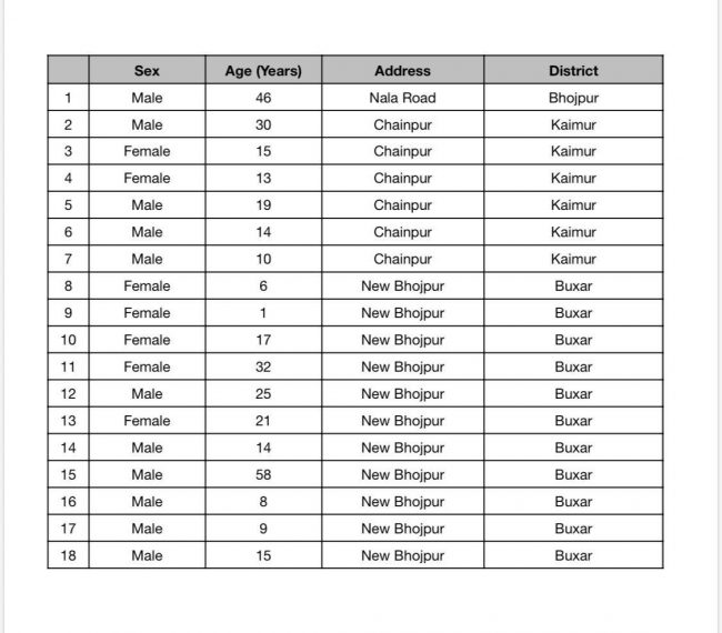 बिहार में एक साथ 18 नए मामले सामने आए हैं, जिसके बाद राज्य में कोरोनावायरस मरीजों की कुल संख्या बढ़कर 450 हो गई है. बिहार के बक्सर जिले से एक साथ 11 मामले सामने आए हैं जबकि कैमूर से 6 और भोजपुर से फिर एक कोरोना संक्रमित मरीज की पुष्टि हुई है.आरा शहर के नाला रोड मेंं 46 साल के एक पुरूष संक्रमित मिले हैं. जबकि बक्सर में सभी मामले नया भोजपुर के हैं.
