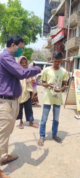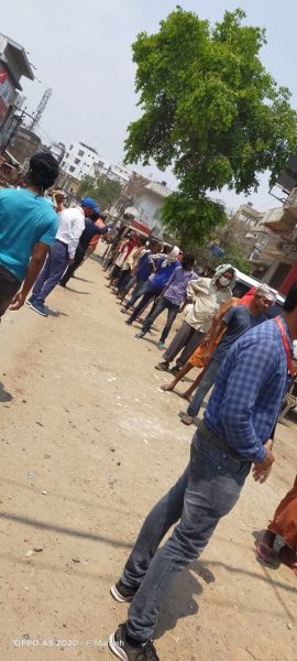 सोशल डिस्टेंस का पालन करते हुए भोजन का वितरण