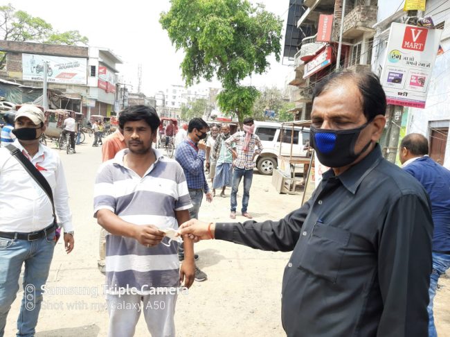 मास्क बाँटते सिविल कोर्ट परिवार के सदस्य