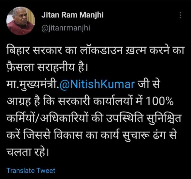 क्या बोले पूर्व मुख्यमंत्री मांझी