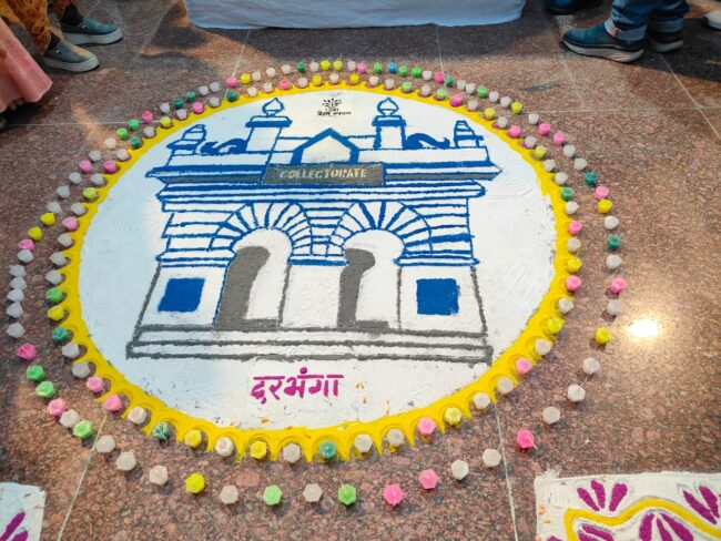 उनके चेहरे की कांति और चाल में स्फूर्ति आनन्द की कथा सुना रहे थे. उप विकास आयुक्त प्रतिभा रानी की अगुवाई में दरभंगा जिला के 150 वाँ स्थापना दिवस के अवसर पर 150 कैंडल जलाई गई. इस अवसर पर अपर समाहर्त्ता सह अपर जिला दण्डाधिकारी राजेश झा “राजा” और अनुमण्डल पदाधिकारी, सदर चन्द्रिमा अत्रि ने केक काटा. वरीय उप समाहर्त्ता, सामान्य प्रशाखा टोनी कुमारी ने अपने नेतृत्व में दरभंगा समाहरणालय के डिजाइन सरीखी एक खूबसूरत रंगोली बनायी. ये मुख्य भवन भव्य है और दृढ़ता का संदेश देता है. अंग्रेजों ने इसे गोथिक स्कूल ऑफ आरकीटेक्चर शैली में बनाया था. आपको बता दें कि 01 जनवरी 1875 ई. को दरभंगा जिले की स्थापना हुई थी.