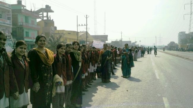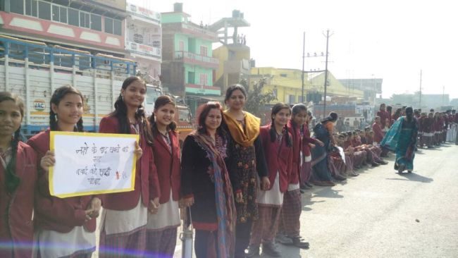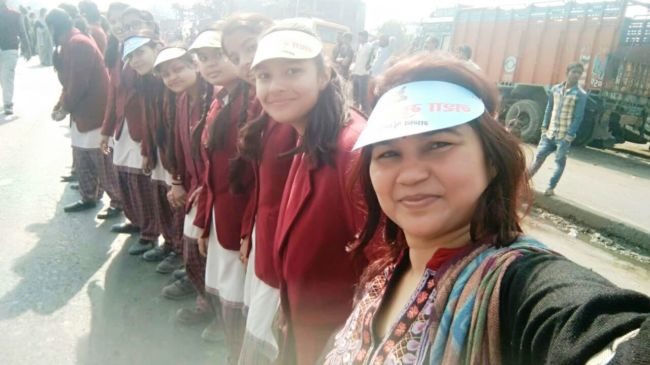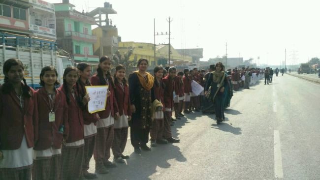 पटना के कुम्हरार स्थित DAV स्कूल के छात्र- छात्राओं ने भी शनिवार को मानव श्रृंखला में शामिल होकर अपना नाम इस ऐतिहासिक कार्यक्रम में दर्ज करा लिया. नशाबंदी के पक्ष में खड़े बच्चों का उत्साह देखते बन रहा था. इस स्कूल के शिक्षक भी शराबबंदी के पक्ष में बच्चों को जागृत करते दिखे.
