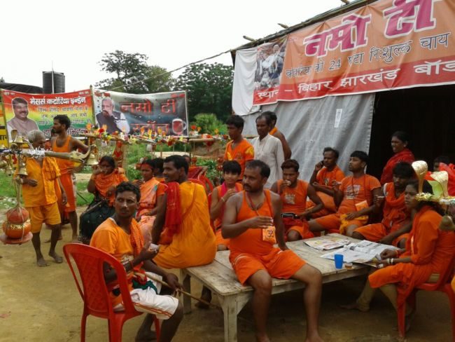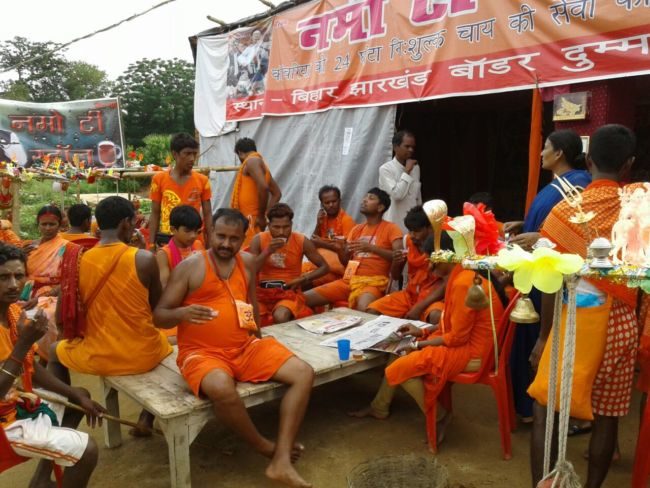 देवघर के रास्ते में बिहार-झारखंड बोर्डर पर नमो टी स्टॉल पर लोगों की भीड़ देखते ही बन रही है. बाबाधाम जा रहे कावरियों के लिए तो ये जैसे वन स्टॉप टी सेंटर बन गया है. देशभर के शिवभक्तों की भीड़ यहां पहुंच रही है और लोग नमो की फोटो के साथ जमकतर सेल्फी भी ले रहे हैं.
