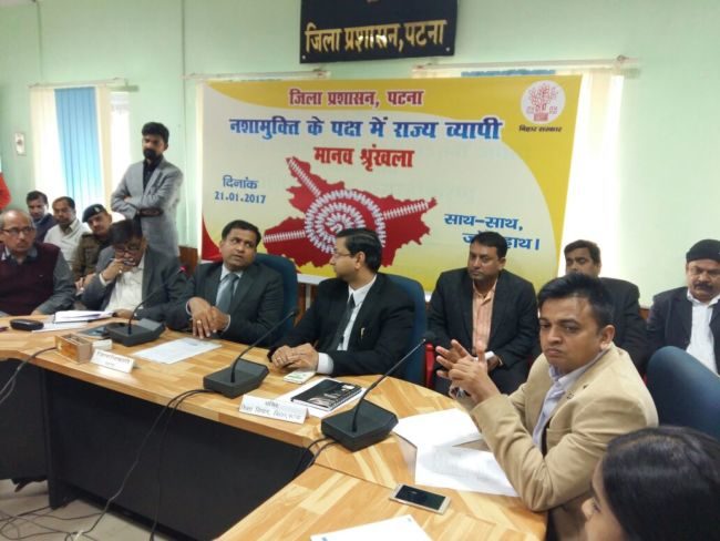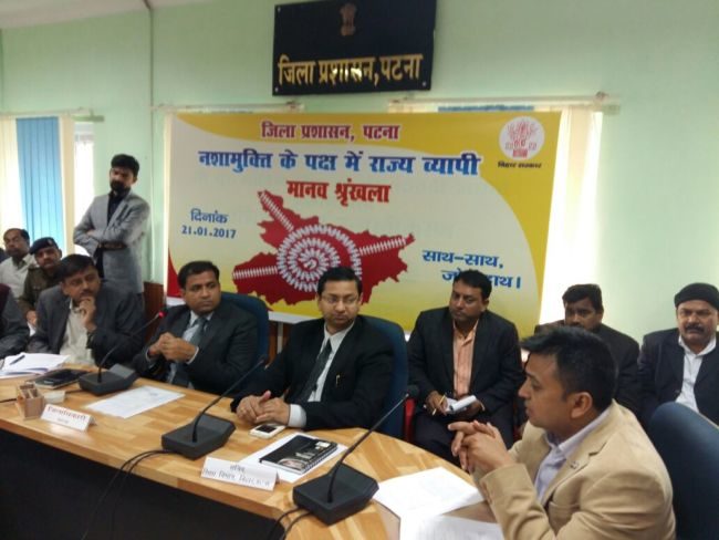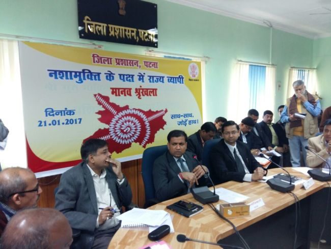21 जनवरी को नशामुक्ति के लिए राज्य भर में बनने वाली मानव श्रृंखला की तैयारी प्रत्येक जिले में शुरू हो गई है इसी क्रम में पटना के जिलाधिकारी संजय कुमार अग्रवाल ने सबन्धित अधिकारियों के साथ एक बैठक में तैयारियों की समीक्षा की .उन्होंने सभी अधिकारियों को मानव श्रृंखला निर्माण की तैयारियों में किसी प्रकार की कोताही नहीं बरतने का निर्देश दिया और साथ ही तय सीमा के अन्दर काम करने की बात कही .इस बैठक में सचिव शिक्षा विभाग जितेन्द्र श्रीवास्तव ने बैठक में प्रस्तावित कार्य योजना की जानकारी दी .इस बैठक में सभी अनुमण्डल पदाधिकारी, प्रखंड विकास पदाधिकारी, अंचल अधिकारी, प्रखंड प्रमुख, तथा मुखिया भी मौजूद है .बैठक में जिला शिक्षा पदाधिकारी के साथ साथ सभी प्रखंड शिक्षा पदाधिकारी मौजूद थे .