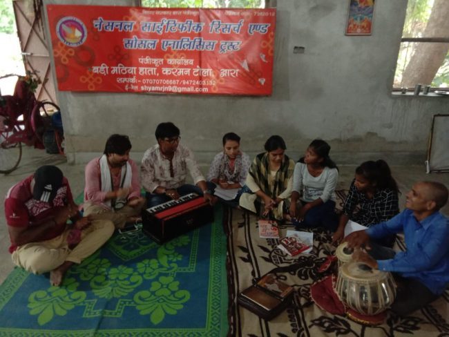 आरा,8 सितम्बर. नेशनल साइंटिफिक रिसर्च एंड सोशल एनालिसिस ट्रस्ट आरा द्वारा संस्था के सदस्यों की बैठक की गई जिसमें सदस्यों के साथ संस्था के कलाकारों, सहयोगियों और बुद्धिजीवी भी शामिल हुए. बैठक भोजपुर कला महोत्सव 2021 को लेकर की गयी. महोत्सव में भोजपुरी भाषा, व कला को विकसित करने हेतु हस्त-शिल्प प्रदर्शनी,चित्रकला,नाट्यकला व संगीत समागम का कर्यक्रम भी आयोजन निर्धारित किया जाएगा. बैठक में निर्णय लिया गया कि दो दिवसीय आयोजन होगा. कार्यक्रम को लेकर अभी से ही संगीत का पूर्वाभ्यास भी भोजपूरी के नांचीज कलाकारों ने शुरू कर दिया. यह महोत्सव ट्रस्ट के नवम स्थापना दिवस के रूप में मनाया जाएगा.