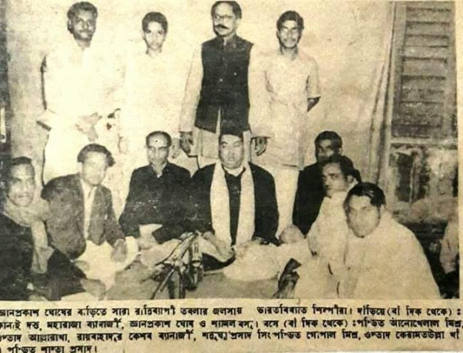 आरा, 19 जुलाई. एक फ्रेम में कैद पुरानी तस्वीर ने संगीत के एक छात्र की नींद उड़ा दी. दरअसल छात्र को एक दुर्लभ तस्वीर मिली जिसमें संगीत के कई विभूतियों को उसने एक साथ देखा और चौंक गया. इस तस्वीर में महान पखावज वादक ताल शिरोमणि पंडित शत्रुंजय प्रसाद सिंह उर्फ बाबू लल्लन जी के साथ कई महान लोग थे.