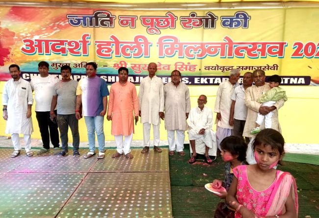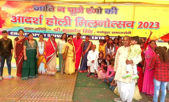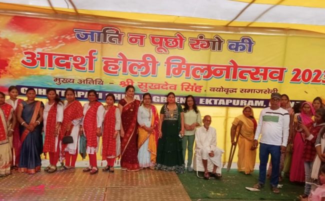 जहाँ एक तरफ समाज में विभिन्न जातीय संगठनो के द्वारा होली मिलन समारोह मनाने की होड़ मची है, वही एकतापुरम में आयोजित आदर्श होली मिलनोत्सव में आयोजको ने “जाति न पूछो रंगों की” के नारे व संकल्प के साथ समाज प्रेम व भाईचारे का संदेश देकर सराहनीय पहल किया है.
