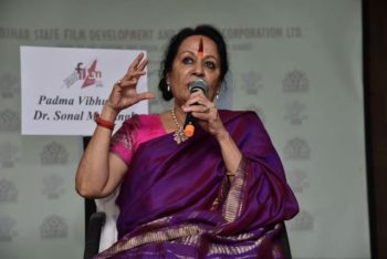 समापन समारोह को संबोध्ाित करते हुए पद्म विभूष्ाण सोनल मानसिंह ने कहा कि मगध की धरती पर आना उनके लिए सौभाग्य की बात है. फिल्म महोत्सव में प्रकाश झा निर्देशित फिल्म सोनल के प्रदर्शन के बाद उन्होंने अपनेे जीवन संघ्ार्ष, पारिवारिक पृृष्ठभूमि, भरत नाट्यम, छऊ नृत्य के अलावा कई विधाओं का अनुभव दर्शकों से साझा किया. उन्होंने कहा कि नृत्य सभी के जीवन में है सभी नृत्यकार हैं. बस फर्क इतना है कि आप उन्हें महसूस नहीं करते. आप सचेत नहीं हैं. उन्होंने कहा कि नृत्य के नियमित करना, शरीर को नियम से बांधना और उस नियम में प्राण फूंकना, यही नृत्य है.