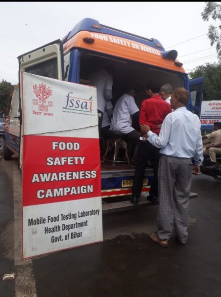 पटना : फूड सेफ्टी ऑन व्हील्स कार्यक्रम के तहत शहर के रेस्टोरेंट्स एवं स्ट्रीट फूड के खाने की गुणवत्ता की जांच की गई। पटना स्मार्ट सिटी लिमिटेड द्वारा आयोजित इस कार्यक्रम में फूड सेफ्टी विभाग द्वारा एक वाहन शहर में परिचालित किया गया जो कि शहर के विभिन्न दुकान एवं रेस्टोरेंट के फूड सैंपल की ऑन स्पॉट जांच करें। शहर के विभिन्न इलाकों में फूड सेफ्टी की गाड़ियां घूम कर न सिर्फ खाद्य पदार्थों की जांच की बल्कि लोगों को जागरूक भी किया।