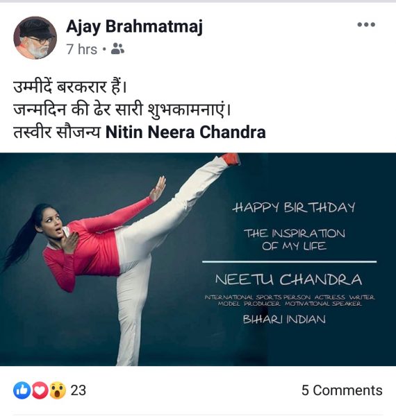मशहूर पत्रकार अजय ब्रह्मात्मज ने भी नीतू को जन्मदिन पर बधाइयां दी है