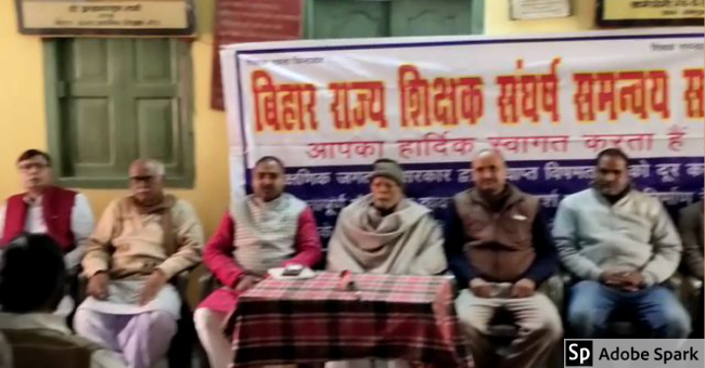 पटना (राजेश कुमार)|बिहार के करीब साढ़े तीन लाख नियोजित शिक्षक 17 फरवरी 2020 से अनिश्चितकालीन हड़ताल पर जाएंगे. सोमवार को बिहार राज्य शिक्षक संघर्ष समन्वय समिति की आम बैठक में एक प्रस्ताव पारित किया गया कि आगामी 17 फरवरी से बिहार के सभी शिक्षक अनिश्चितकालीन हड़ताल पर जाएंगे. साथ ही साथ 11 सदस्य कोर कमेटी का भी गठन किया गया है जिसने ब्रजनंदन शर्मा, प्रदीप कुमार पप्पू, पूरण कुमार, आनंद कौशल सिंह, बंशीधर बृजवासी, राजू सिंह, शिवेंद्र पाठक, मार्कंडेय पाठक, चौधरी, किशोर कुमार और प्रदीप राय है यह कोर कमेटी किसी भी प्रकार की वार्ता ने सभी कोर कमेटी के सदस्य एक साथ बैठक करेंगे.