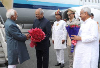 उप राष्ट्रपति मोहम्मद हामिद अंसारी बिहार की दो दिवसीय यात्रा पर गुरुवार को पटना पहुंचे. उनका विशेष विमान दोपहर बाद पटना हवाई अड्डे पर पहुंचा जहाँ राज्यपाल रामनाथ कोविंद और मुख्यमंत्री नीतीश कुमार ने फूलों का गुलदस्ता भेंटकर उप राष्ट्रपति का स्वागत किया. उपराष्ट्रपति हवाईअड्डे से ही नालंदा के लिए रवाना हो गए.