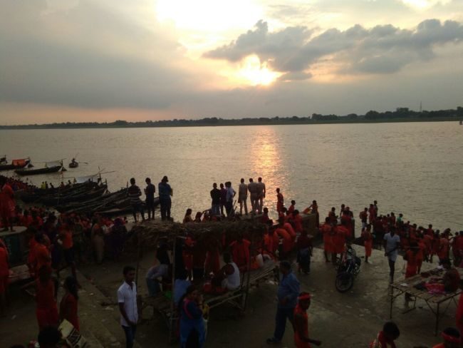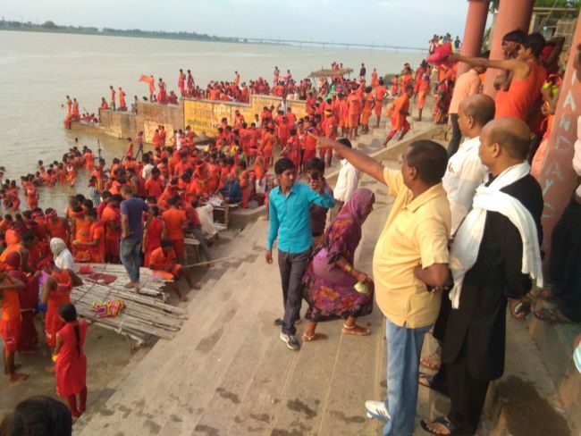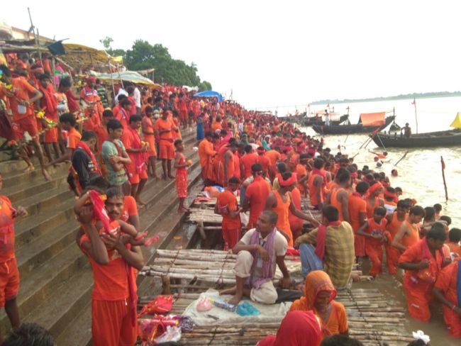 रामरेखा घाट से कांवर लेकर जाते कांवरियां