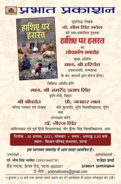 “हाशिए पर हसरत” का लोकार्पण 30 अगस्त को बिहार में हाशिये पर रहने वालों की क्या है हसरत