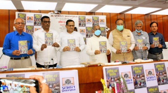 प्रख्यात लेखक सह पत्रकार भीम सिंह भवेश की पुस्तक “हाशिए पर हसरत” का लोकार्पण सोमवार को बिहार विधान परिषद के सभागार में किया गया। प्रभात प्रकाशन द्वारा आयोजित कार्यक्रम का पुस्तक का लोकार्पण राज्यसभा के उप सभापति हरिवंश, बिहार सरकार के कृषि मंत्री अमरेंद्र प्रताप सिंह और बिहार विधान परिषद के सभापति अवधेश नारायण सिंह ने संयुक्त रूप से किया। इस अवसर पर हरिवंश ने कहा कि हाशिए पर हसरत अपने आप में ही पूरी किताब के बारे में बता रहा है। उन्होंने कहा कि यह पुस्तक समाज के मार्मिक दृश्य की दस्तावेज और जीवंत कृति है। बिना संवेदना के कोई कुछ नहीं लिख सकता है लेकिन मुसहर जाति से आने वाले लोगों के लिए लेखक ने जो कुछ लिखा है वह अद्भुत है।