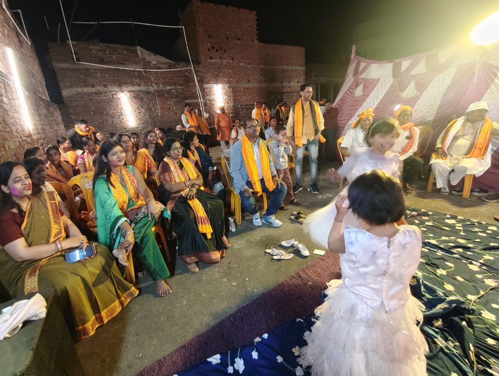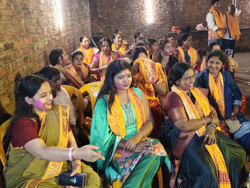 कार्यक्रम के दौरान महिलाओं और बच्चियों ने भी “रंग बरसे चुनरिया अंगना में”, “पीछे ली हरदिया ब्रिज में होली खेले रंग रसिया” सहित कई पारंपरिक और लोक गीत प्रस्तुत कर सबका दिल जीत लिया। अंत में सभी ने एक-दूसरे को अबीर-गुलाल लगाकर आशीर्वाद और शुभकामनाएं दीं।
