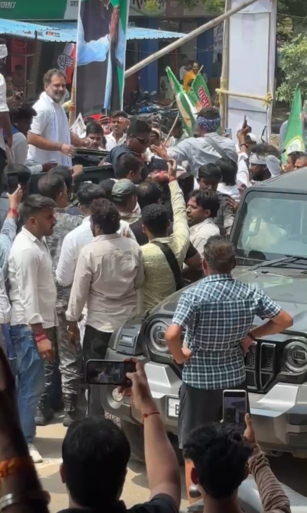 तभी राहुल गांधी ने हाथ उठाकर सुरक्षा रोक दी और खुद भाजपा कार्यकर्ताओं को पास बुला लिया।