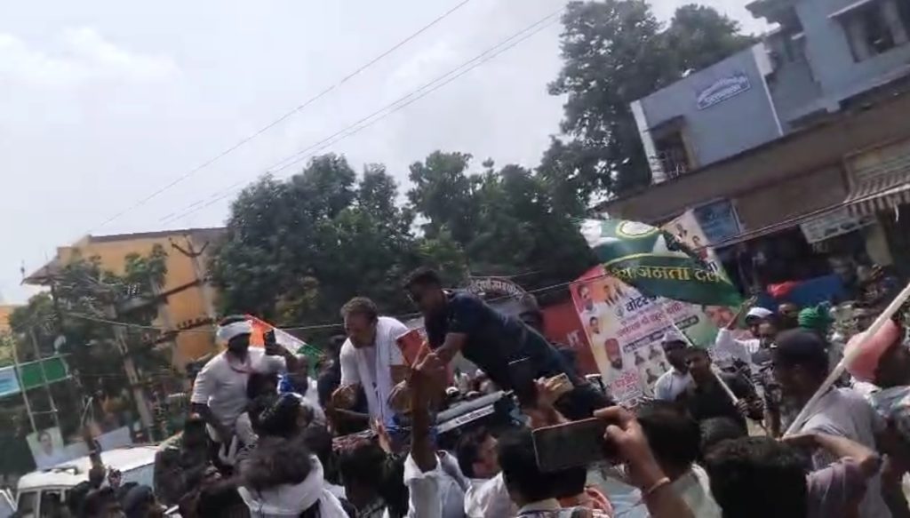 भाजपा कार्यकर्ताओं ने काला झंडा दिखाते हुए“राहुल गांधी मुर्दाबाद” के नारे लगा दिए।