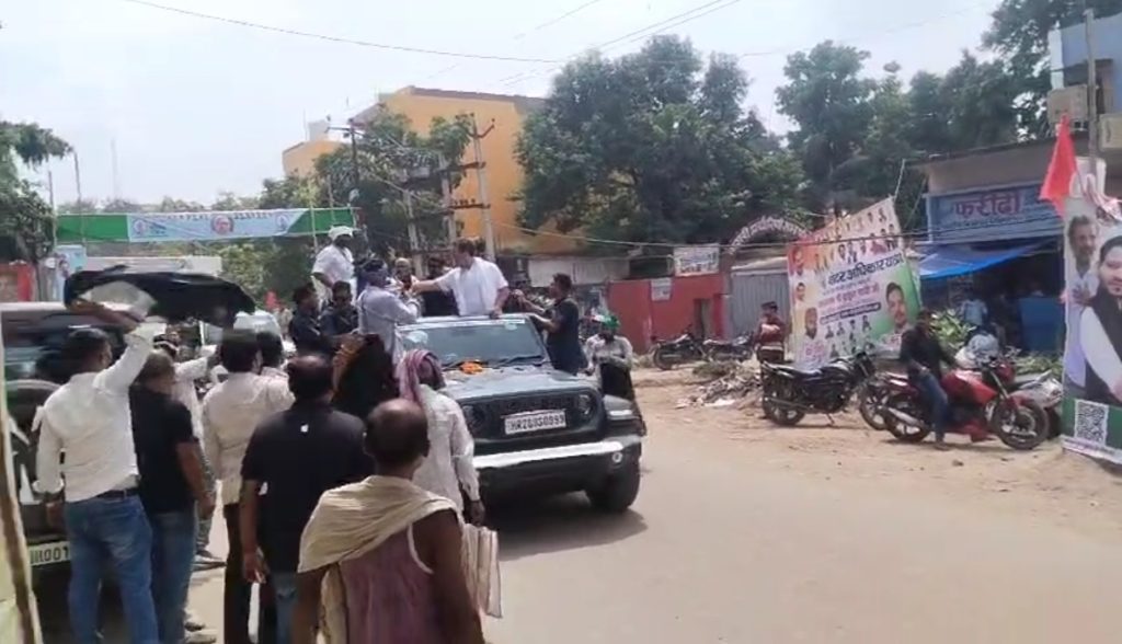 आरा, 30 अगस्त। वोटर अधिकार यात्रा के दौरान शनिवार को भोजपुर जिला मुख्यालय आरा की सियासी हवा अचानक बदल गई। नागरी प्रचारिणी के पास जैसे ही राहुल गांधी और तेजस्वी यादव का काफिला पहुंचा,