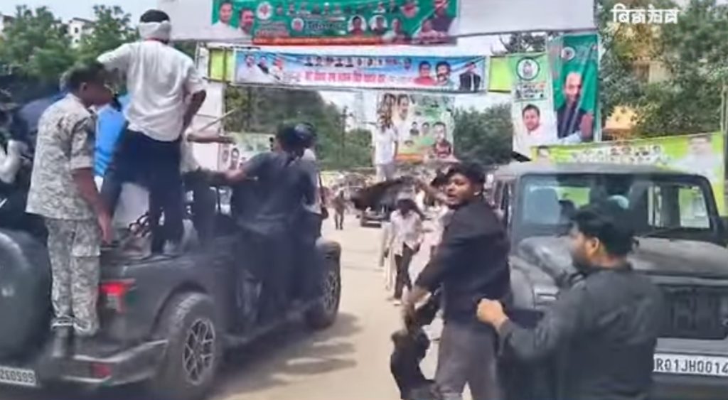 सुरक्षाकर्मी तुरंत हरकत में आए और कार्यकर्ताओं को हटाने लगे।