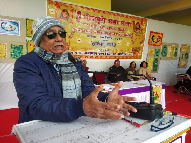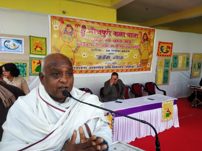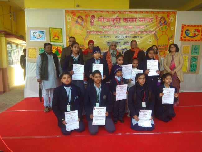 कला मंत्री ने अपने सम्बोधन में विद्यालय परिवार के प्रति ऐसे आयोजन के लिए आभार व्यक्त किया और प्रतिवर्ष भोजपुरी कला महोत्सव कराए जाने पर विचार का आश्वासन दिया. प्राचार्या डॉ अर्चना सिंह ने आगन्तुकों का अभिनंदन करते हुए कहा कि ऐसी कला हमारी विलुप्त होती परम्परा की प्रतीक है और ऐसे चित्र हमें हमारी प्रकृति से जुड़ाव की याद दिलाते हैं.