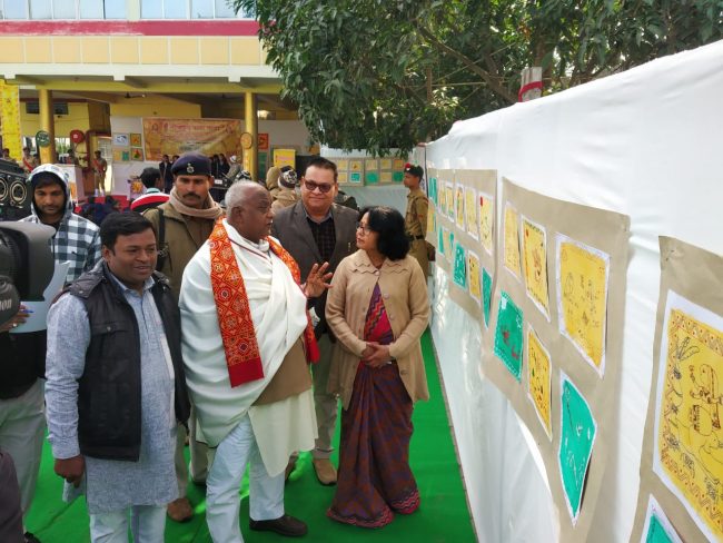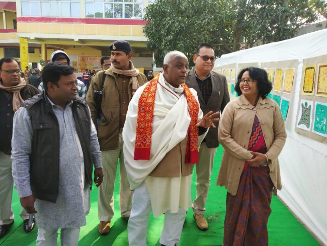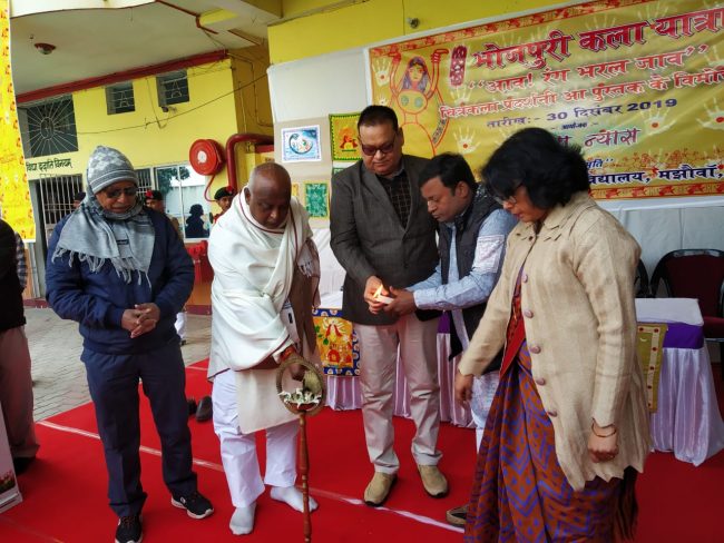 बता दें कि सर्जना न्यास एवं संभावना विद्यालय के संयुक्त तत्त्वावधान में “आवs रंग भरल जाव” शीर्षक से 24 दिसंबर से मझौवाँ स्थित विद्यालय प्रांगण में यह कार्यशाला आयोजित थी. अंतिम दिन आयोजित इस प्रदर्शनी का उदघाटन कला संस्कृति मंत्री प्रमोद कुमार, विद्यालय निदेशक कुमार द्विजेन्द्र, प्राचार्या डॉ अर्चना सिंह, सर्जना ट्रस्ट के अध्यक्ष संजीव सिन्हा, तथा पूर्व विभागाध्यक्ष हिंदी-भोजपुरी विभाग डॉ नीरज सिंह ने संयुक्त रूप से दीप प्रज्ज्वलित कर किया.