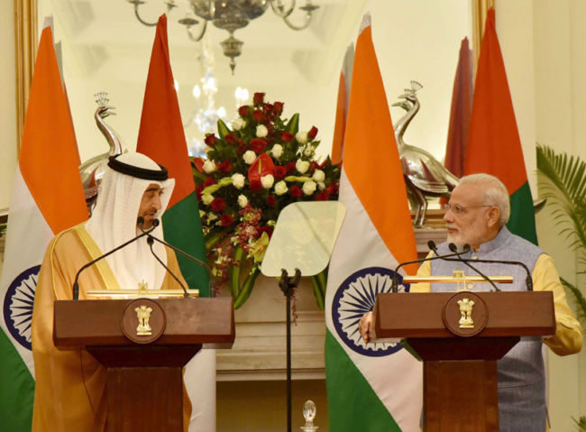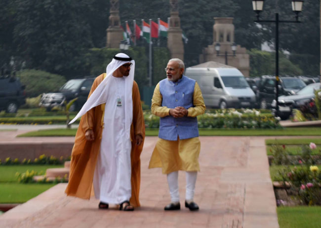 भारत और संयुक्त अरब अमीरात दोनों देश समय के साथ कदमताल कर रहे हैं . इसके तहत दोनों देश रणनीतिक सहयोगी बन कर उभरे हैं इस नए संबध के तहत यूएई भारत की ऊर्जा जरूरतों के लिहाज से तेल की आपूर्ति भी बढ़ाने पर सहमत हो गया है. मंगलोर स्थित कच्चे तेल भंडार का आधा हिस्सा भरने के लिए राजी हो गया है. दोनों देशों के बीच हुए समझौते के तहत अबू धाबी नेशनल ऑयल कारपोरेशन 60 लाख बैरल कच्चे तेल का मंगलोर में भंडारण करेगा. भारत की ऊर्जा खपत को देखते हुए यूएई बीते सालों में बड़ा साझीदार बनकर उभरा है. 2015-16 में भारत को तेल निर्यात करने वाले देशों में यह पांचवें नंबर पर था. बुधवार को दोनों देशों के बीच 14 समझौतों पर हस्ताक्षर किए गए. क्राउन प्रिंस शेख मुहम्मद बिन जायद अल नाहयान की अगुआई में अब तक जो जो समझौते हुए हैं उससे साफ है कि अब दोनों देश मजबूत साझेदार बन क्र दुनिया में सामने आयेंगे ,क्राउन क्राउन प्रिंस दिल्ली में है और 68 वें गणतंत्र दिवस समारोह के मुख्य अतिथि भी हैं क्राउन प्रिंस और प्रधानमंत्री नरेंद्र मोदी के बीच द्विपक्षीय वार्ता के बाद कई समझौतों पर हस्ताक्षर किए गए. इनमें सुरक्षा से लेकर व्यापार और समुद्री क्षेत्र तक शामिल हैं. अब तक ऐसे समझौते संयुक्त अरब अमीरात ने बहुत कम देशों के साथ किया है. नई दिल्ली में राष्ट्रपति और प्रधानमंत्री ने दोनों ने उनका स्वागत किया उन्हें गार्ड ऑफ़ ऑनर भी दिया गया .